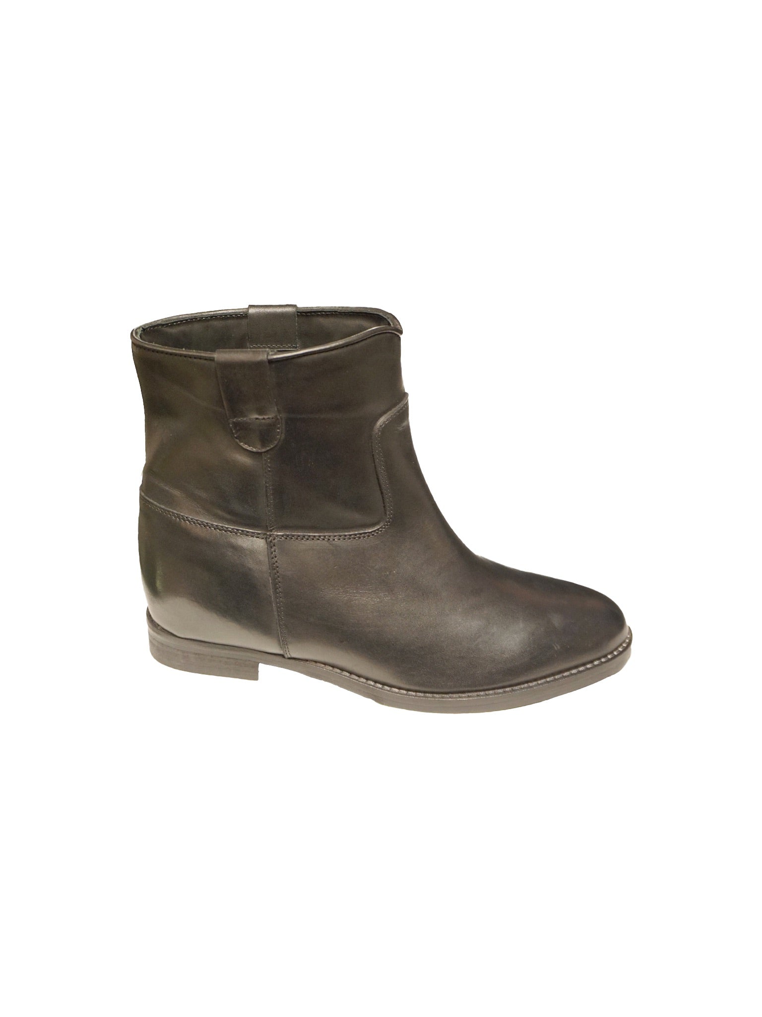 Stivaletto alla caviglia in pelle nera con gambale morbido e tacco basso