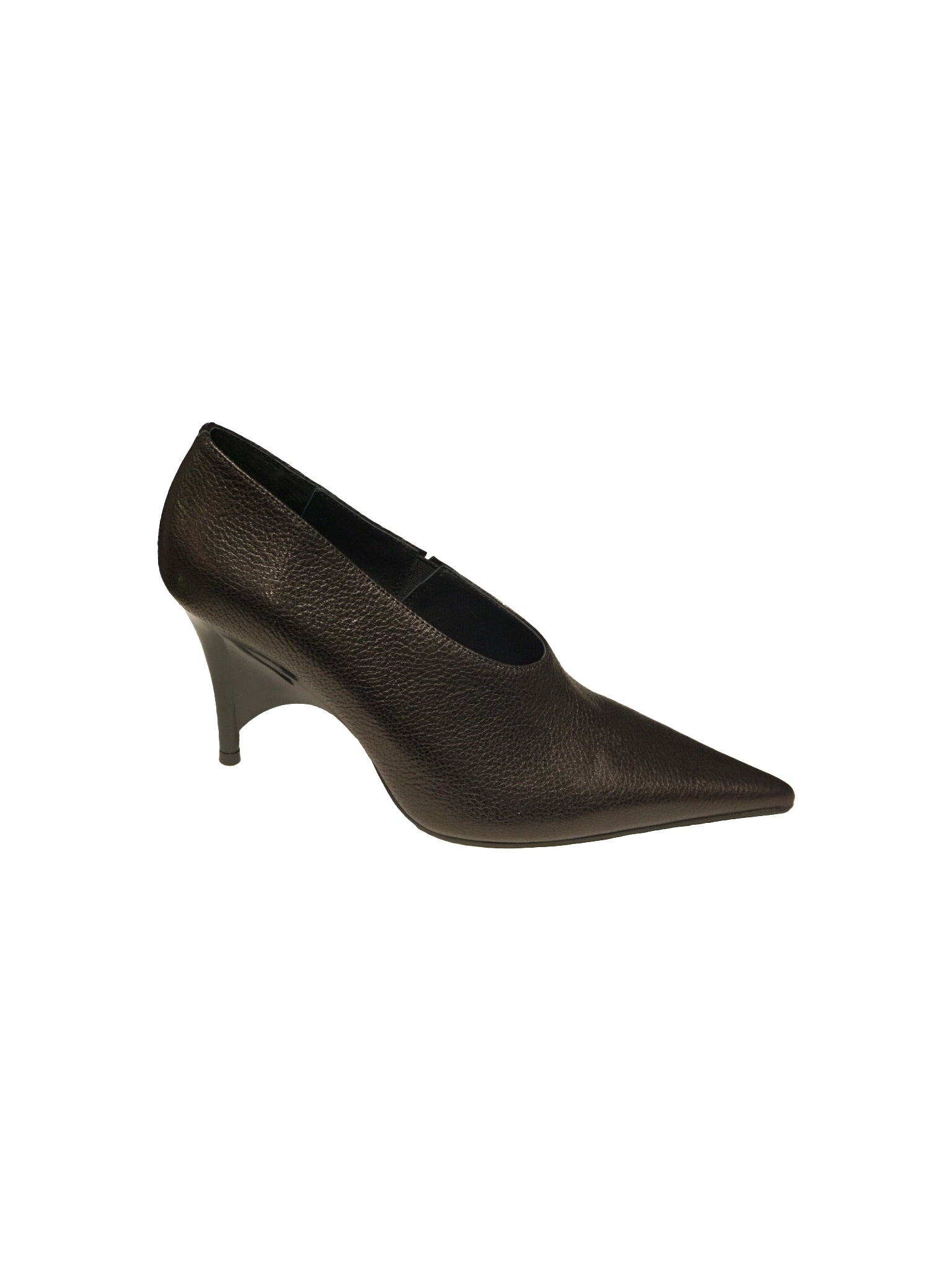 Décolleté in pelle color nero con punta affusolata e tacco a spillo scultura