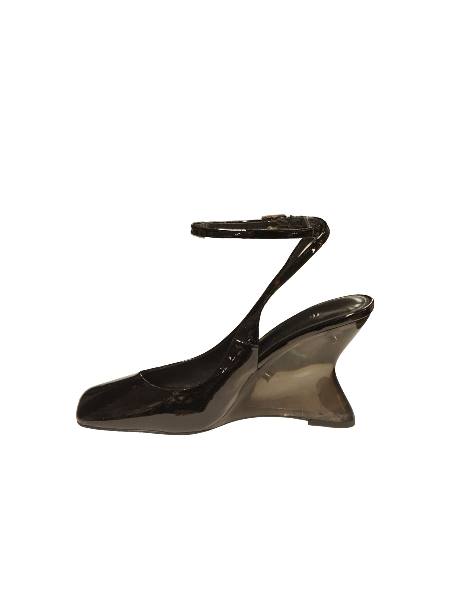 Décolleté slingback in vernice nera con zeppa trasparente