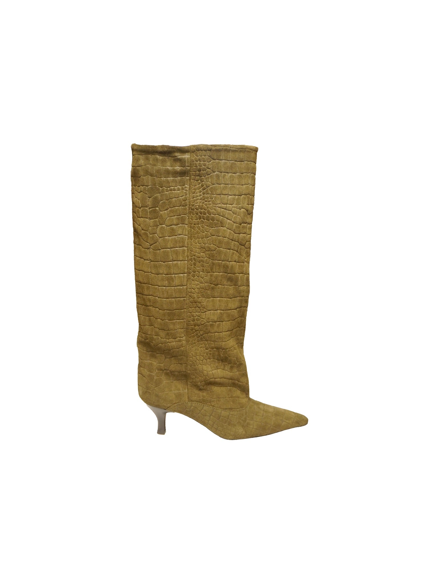 Stivali a gambale in camoscio color cammello con tacco basso