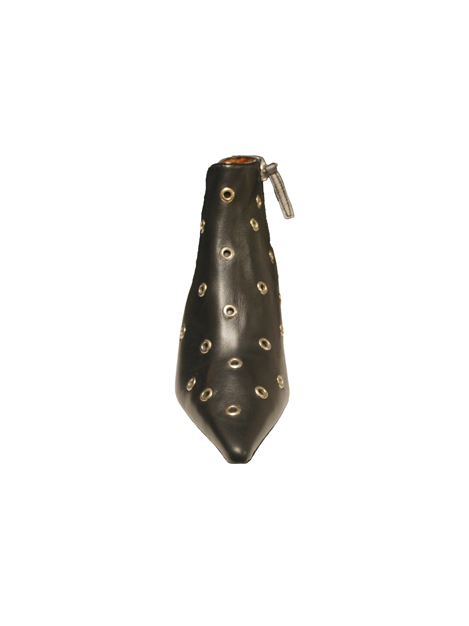 Décolleté slingback in vernice nera con tacco a spillo metallizzato oro