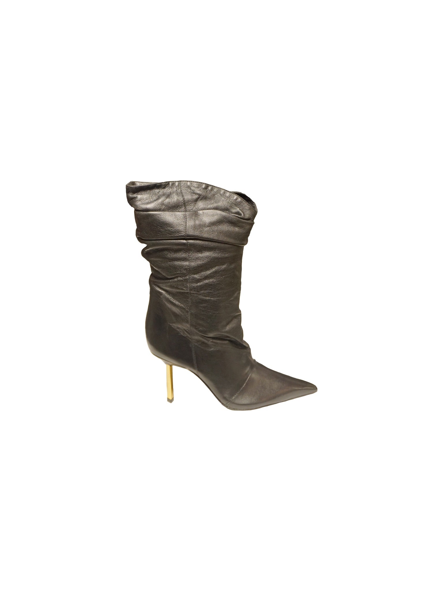 Stivaletto in pelle color nero con punta affusolata e tacco a spillo